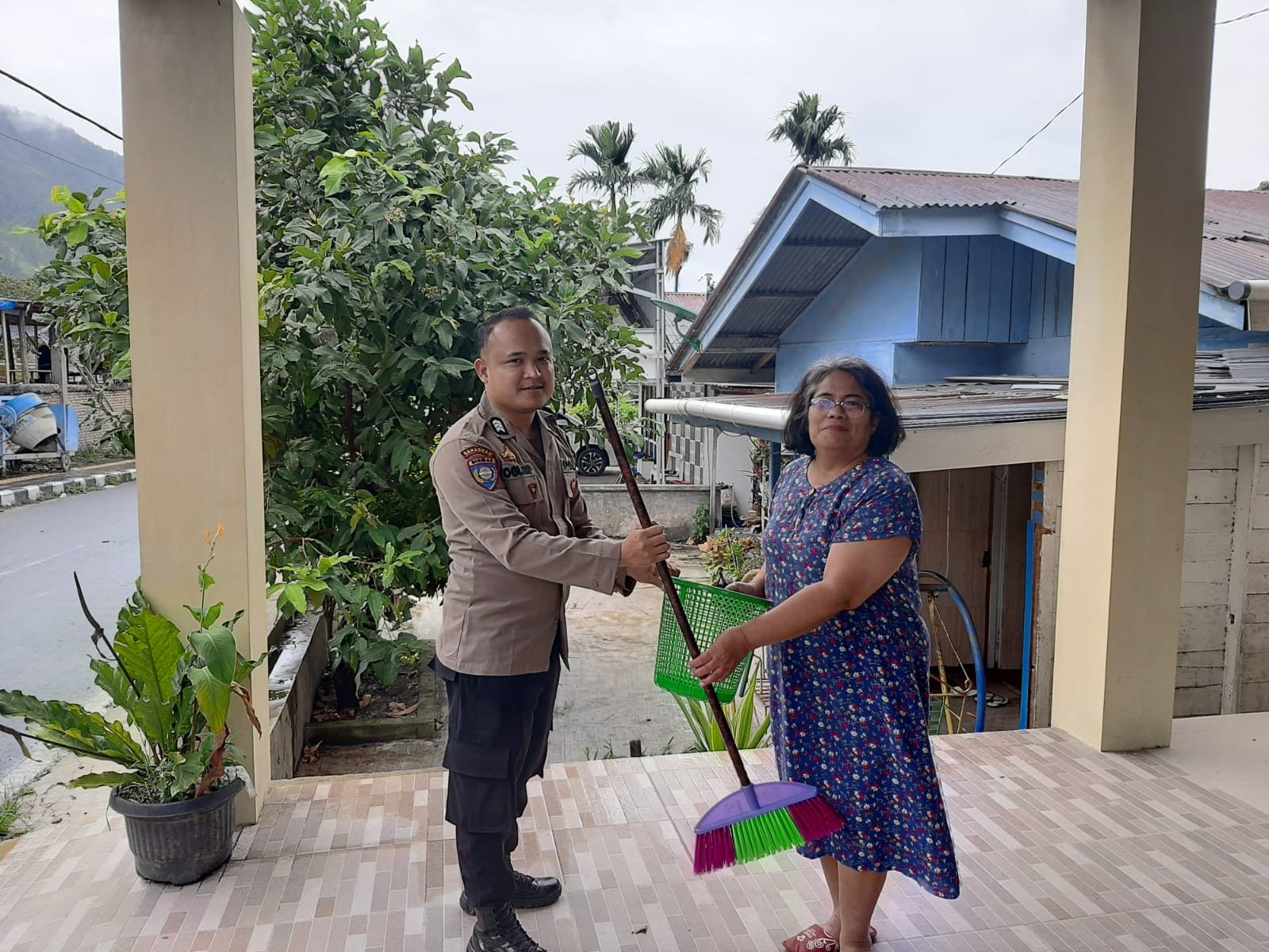 Brigadir Polisi (BrigPol) Yogi Harahap Personil Sat Binmas Polres Samosir bersama Brigadir Polisi Satu (Briptu) Jefta Sianturi, anggota Bhabinkamtibmas, memberikan sarana kontak berupa alat kebersihan kepada masyarakat Desa Parsaoran I dan Kelurahan Pasar Pangururan, Samosir. Bantuan yang diserahkan kepada masyarakat serta perangkat desa/keluarahan sebagai bentuk apresiasi atas dukungan menjaga keamanan dan ketertiban di lingkungan mereka.