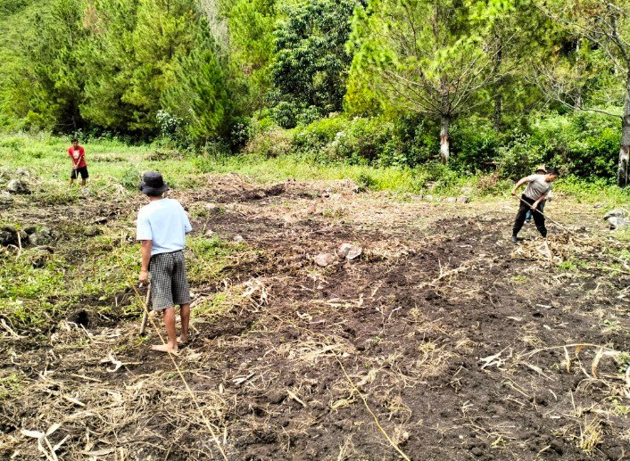 Penanaman di lahan seluas 2 hektar di Dusun III Desa Janji Martahan yang oleh Aiptu M.J. Pasaribu dan Brigadir A. Butar Butar, personel Polsek Harian bersama masyarakat membagi tugas dalam proses penanaman.