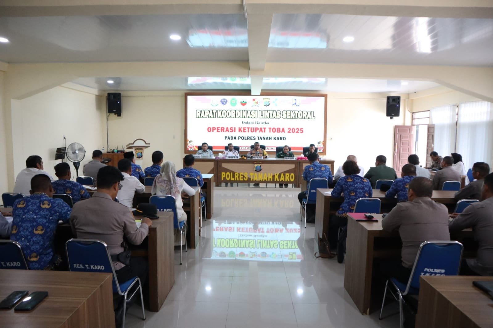 Rapat dipimpin langsung oleh Kapolres Tanah Karo, AKBP Eko Yulianto, S.H, S.I.K, M.M, M. Tr. Opsla, serta dihadiri perwakilan dari Pemkab Karo, Kodim 0205/TK, Yonif 125/SMB, Dinas Perhubungan dan instansi terkait lainnya.